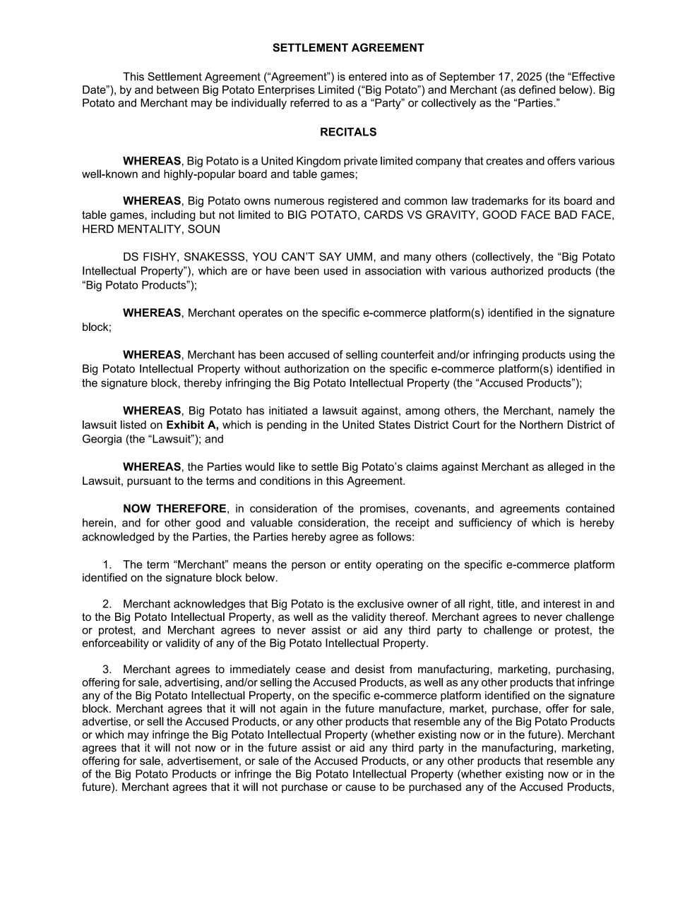团队接获多位被告委托后,第一时间启动多维度案件研判:一方面梳理原告 Big Potato Enterprises Limited 的商标权利范围、侵权指控依据,另一方面重点分析其代理律所 SLADKUS的执业特点——针对其位于乔治亚州的地域属性,研究当地应诉的时间成本与经济成本、法院判决倾向;针对其与 GBC 律所的合作背景,预判谈判中可能出现的强硬立场与争议焦点,提前制定应对策略。